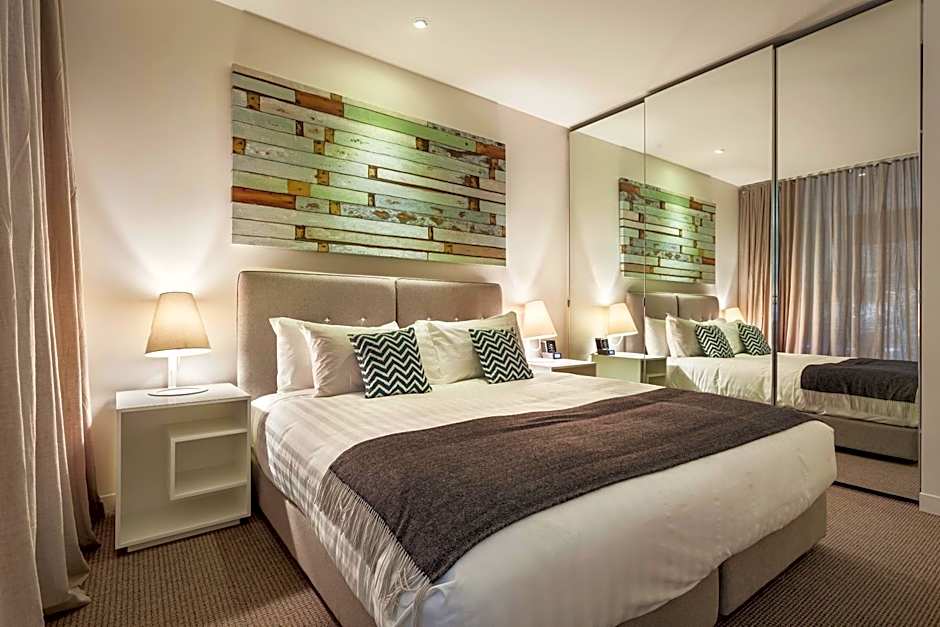 The Executive Studio features a comfortable queen bed, apartment-controlled air conditioning, modern kitchenette equipped with cooktop, bar fridge, toaster, kettle and microwave, plus modern private bathroom with all your amenities. Also included is a work desk, high-speed internet access and LCD TV.